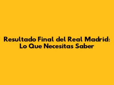 Resultado Final Del Real Madrid: Lo Que Necesitas Saber