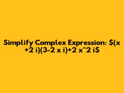 Before we get into the nitty-gritty of the simplification, let's quickly recap what complex numbers are and the rules we'll be using. A complex number is generally expressed in the form a+bia+bi, where aa and bb are real numbers, and ii is the imaginary unit. The imaginary unit ii is defined as the square root of -1, so i=βˆ’1i = \sqrt{-1}, which means i2=βˆ’1i^2 = -1. This property is crucial for simplifying expressions involving i2i^2. When we multiply complex numbers, we use the distributive property, similar to multiplying binomials. For example, (a+bi)(c+di)=ac+adi+bci+bdi2(a+bi)(c+di) = ac + adi + bci + bdi^2. Since i2=βˆ’1i^2 = -1, this becomes ac+adi+bciβˆ’bdac + adi + bci - bd, which can then be rearranged into the standard a+bia+bi form by grouping the real terms (acβˆ’bdac-bd) and the imaginary terms (ad+bcad+bc) together: (acβˆ’bd)+(ad+bc)i(ac-bd) + (ad+bc)i. We'll be applying these fundamental principles to our given expression (x+2i)(3βˆ’2xi)+2x2i(x+2 i)(3-2 x i)+2 x^2 i. Understanding these foundational concepts is key to successfully navigating the simplification process and ensuring accuracy in your final answer. It's always a good idea to double-check your understanding of these rules before proceeding with more complex calculations, as a solid grasp of the basics will prevent errors down the line.